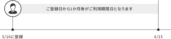 5月16日にご登録された場合、6月15日(1ヶ月後)がご契約満了日となり